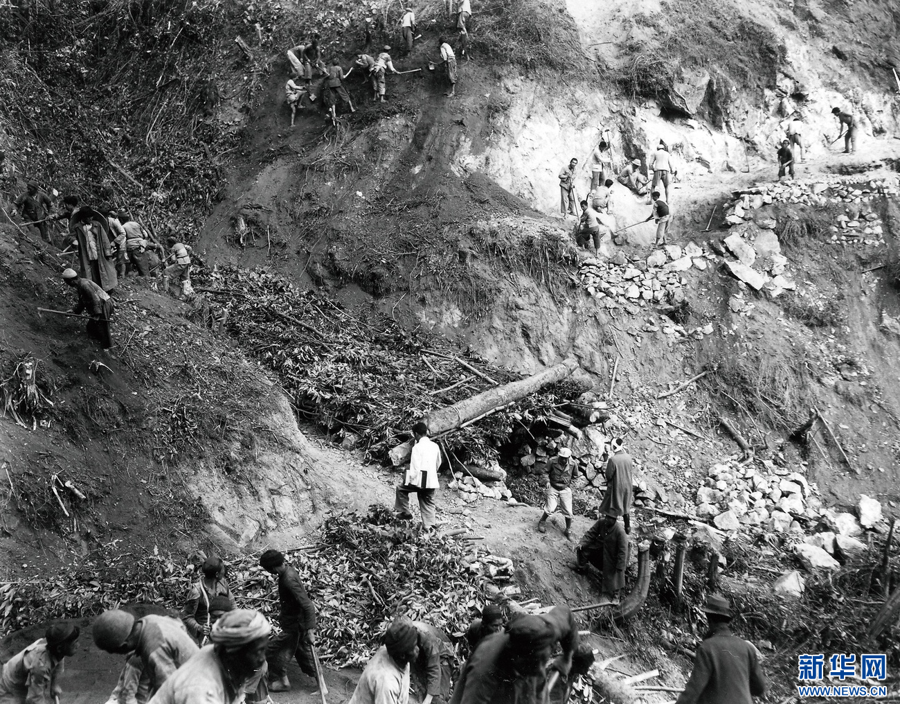 云南民眾修筑滇緬公路的場景。資料圖片(昆明市博物館供圖)