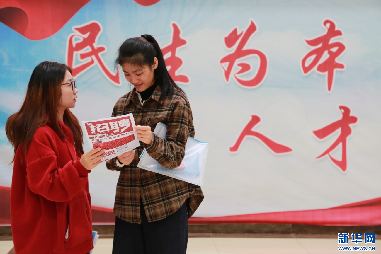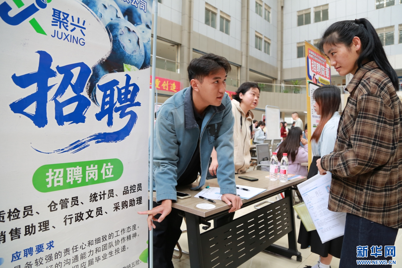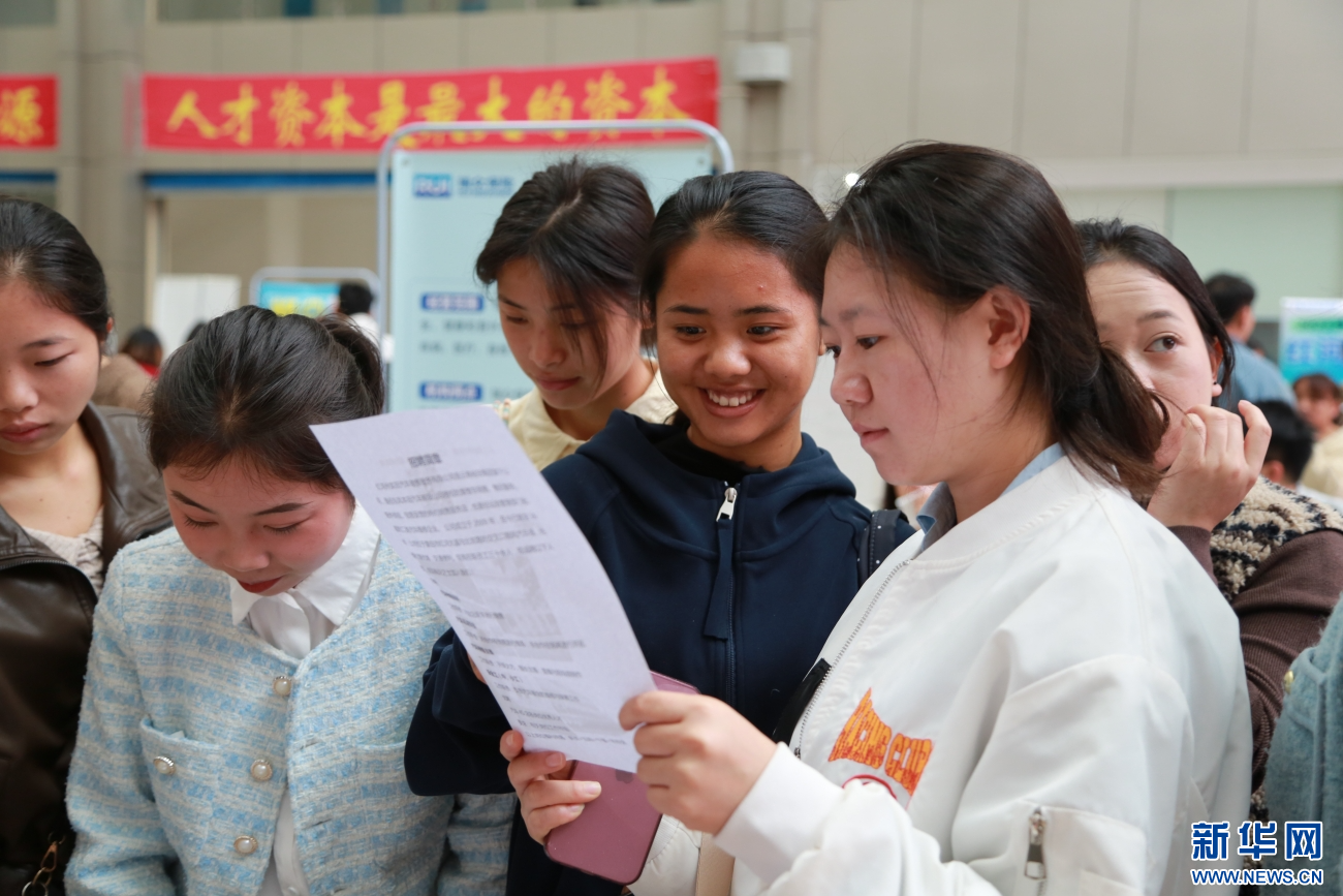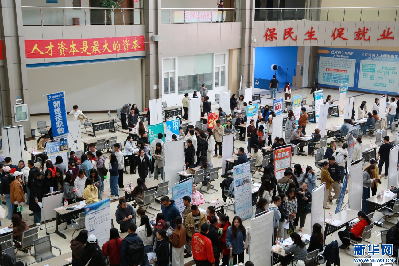 11月8日,職引未來——紅河州2025年全國城市聯合招聘高校畢業生專場現場招聘會在云南省蒙自市舉辦,64家用人單位參會,為高校畢業生提供教師、研發設計、企業管理、新媒體運營、金融銷售等就業崗位1375個。(薛瑩瑩)