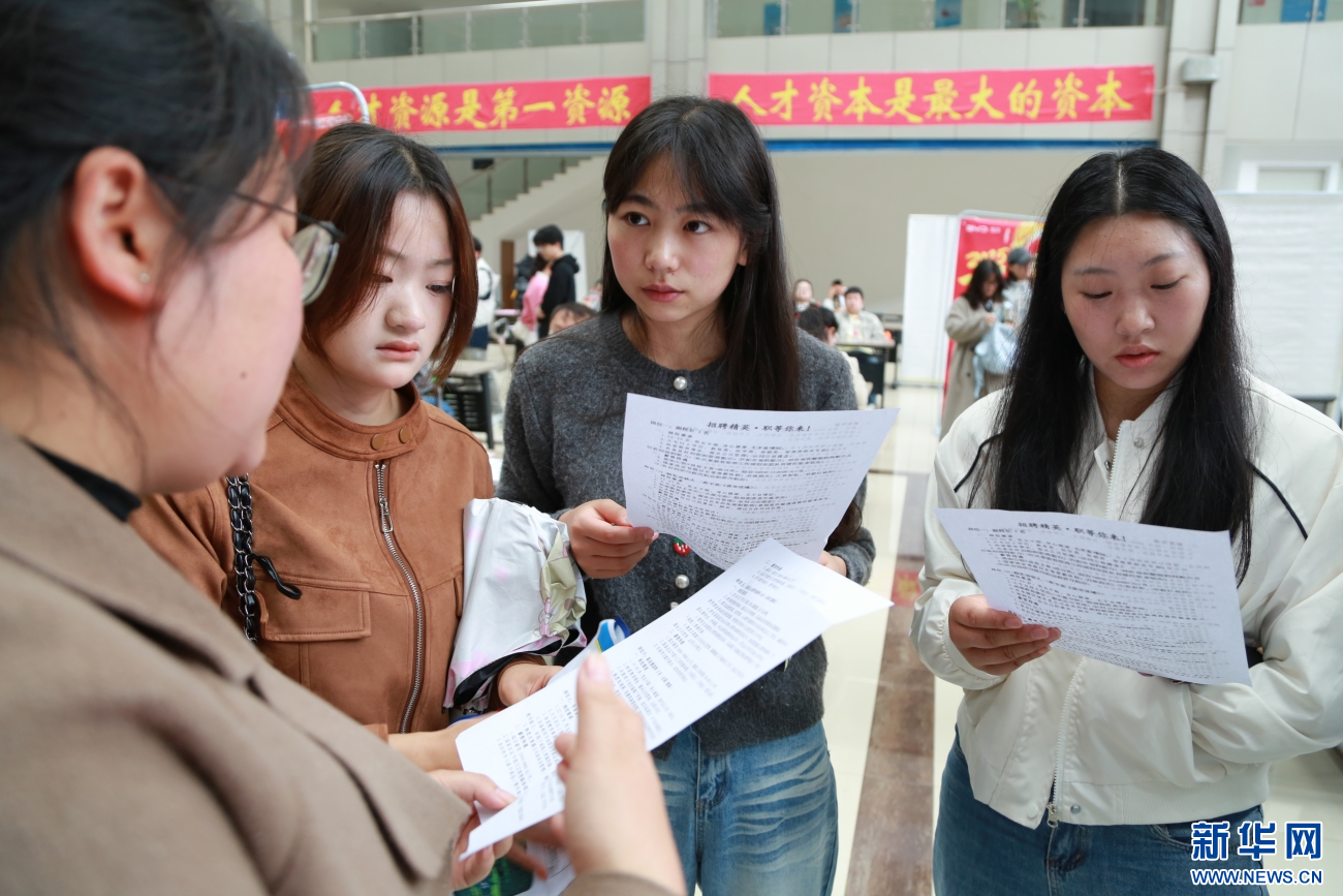畢業生在招聘會上了解崗位信息(11月8日攝)。新華網發(薛瑩瑩 攝)