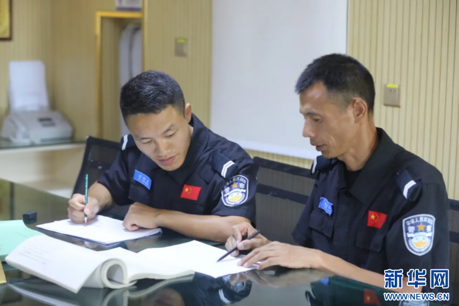 譚建華(左)和同事開展巡邏(資料圖)。新華網發(云南省公安廳新聞宣傳處供圖)