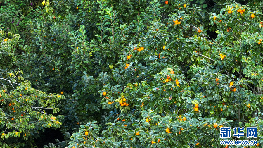 戶撒鄉成熟的柿子(11月6日攝)。新華網發(段宗智 攝)