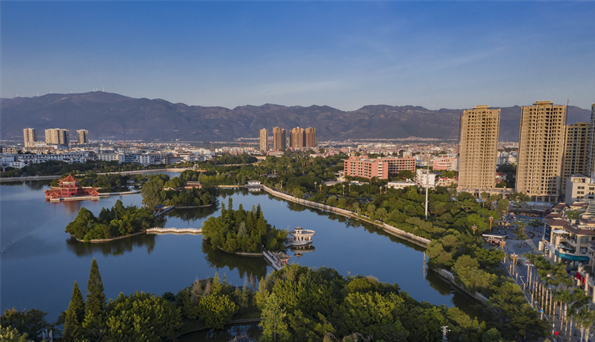 雨后瀝青路面泛起鏡面光澤,倒映著云朵像漂浮在琉璃海里,連輪胎碾過都只留下淡淡的水痕,蒙自城市道路就是這么干凈。